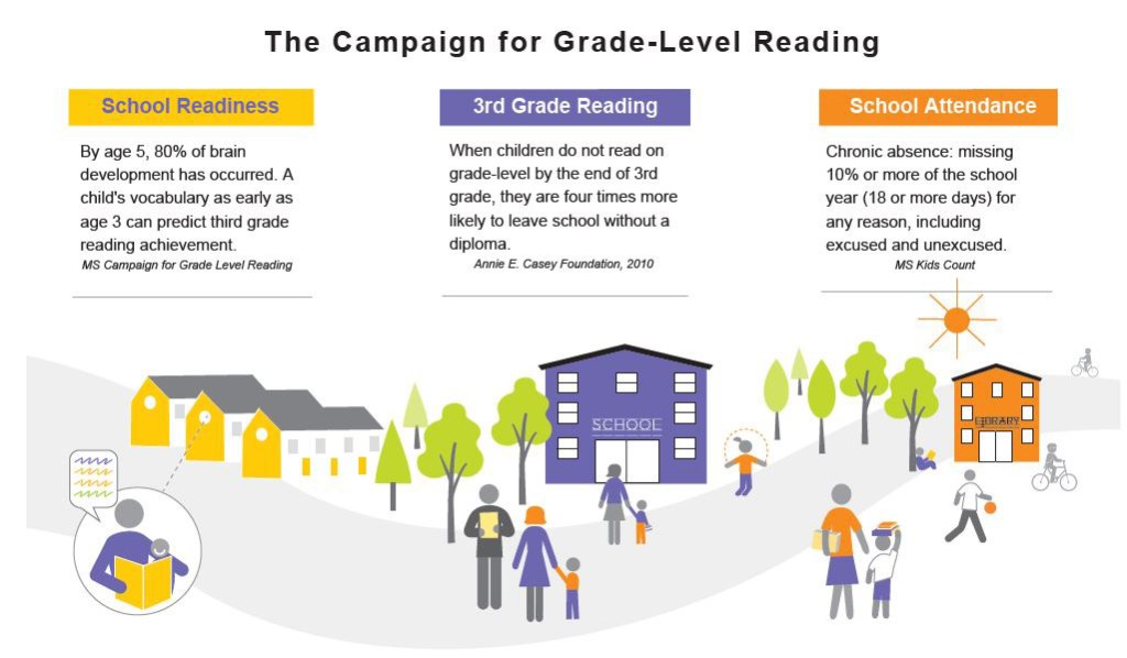 The Coalition joined the National Campaign for Grade Level Reading in 2018, the fifth community in Mississippi to join the national campaign. Tupelo/Lee County became a certified Excel By 5 community in 2013, joining dozens of others across the state of Mississippi.